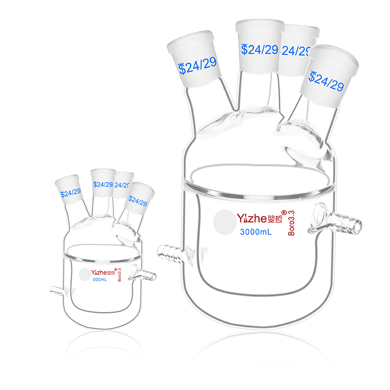 翌哲四口夹套反应瓶双层反应器250/500/1000ML反应釜玻