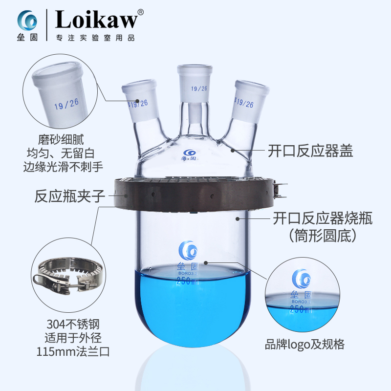 快开式反应釜高硅硼玻璃开口反应器球形筒形双层烧瓶250ml/50