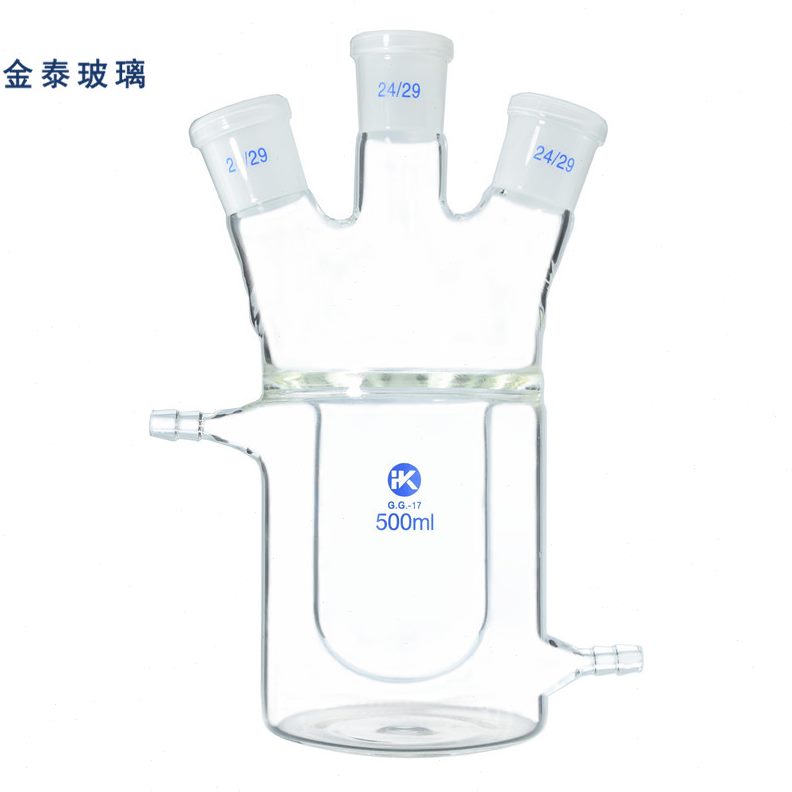 三口夹套反应瓶双层反应器 玻璃夹套反应烧瓶250ml500ml1