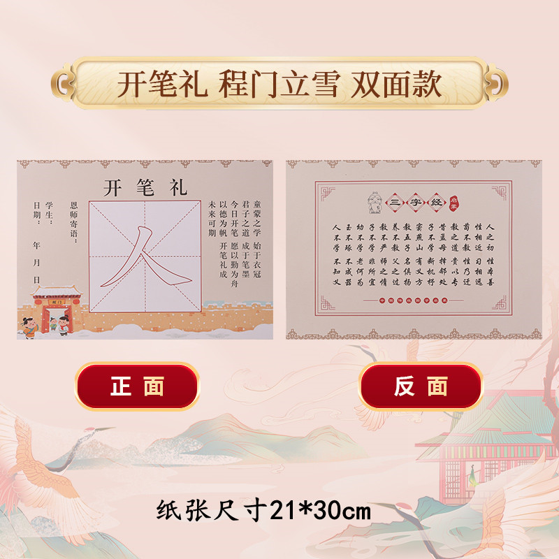 卷轴开笔礼人字帖幼儿园一年级小学生国学启蒙人字贴描红毛笔宣纸