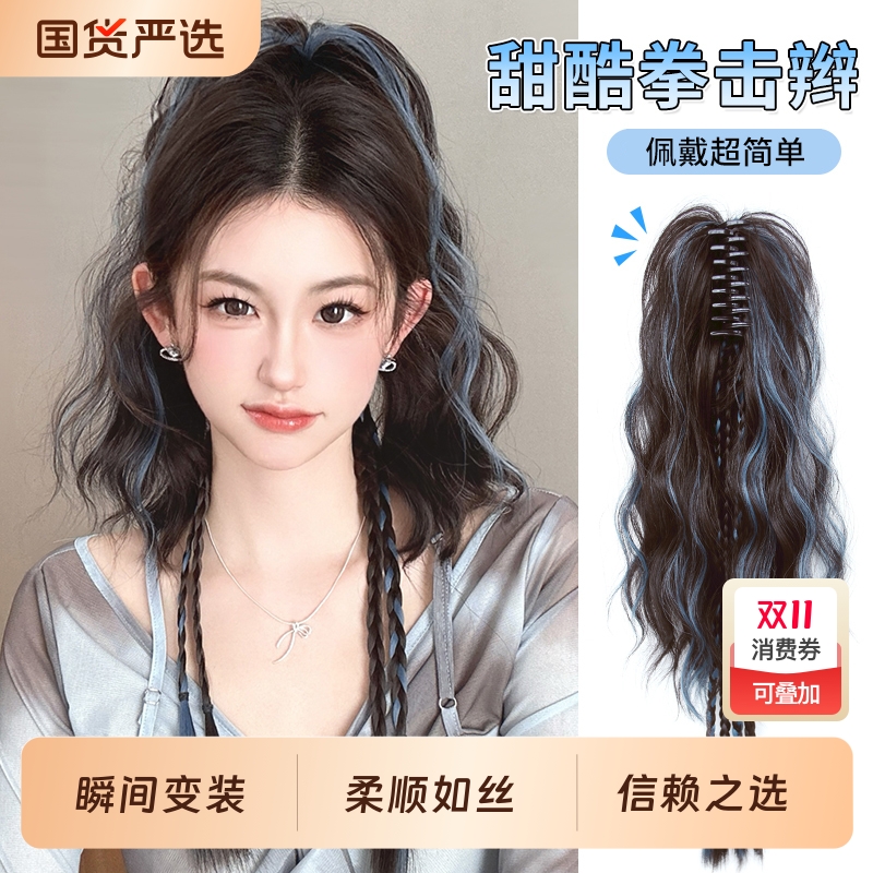 假发辫子女抓夹高马尾彩色挑染拳击辫仿真半扎辣妹麻花辫甜酷造型