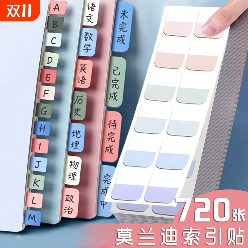 莫兰迪色系标签索引贴便利贴粘性纸质便签纸文具小条可书写记事贴分类