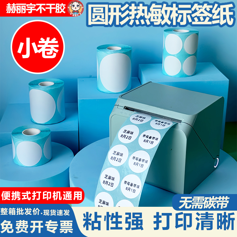 小卷三防热敏圆点贴尺码贴圆形不干胶可粘贴小标签贴纸便携式