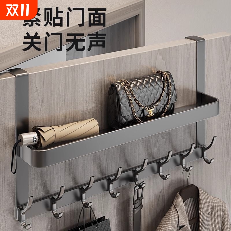 门后挂衣架挂钩免打孔衣服收纳架入户门上挂架壁挂衣钩太空铝加长