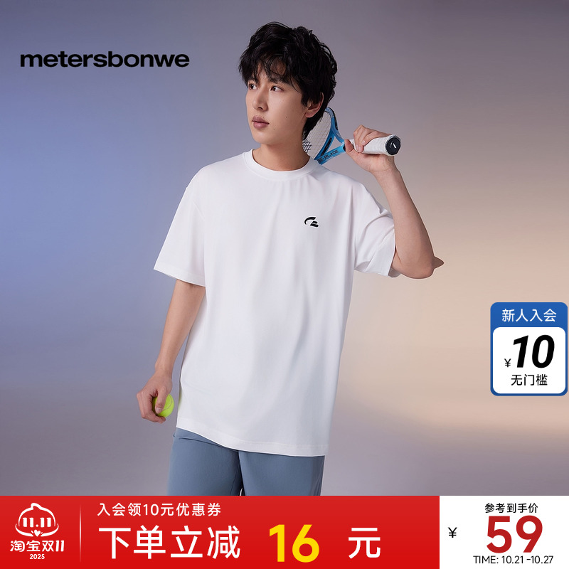 美特斯邦威T恤男夏季新款运动后背印花针织舒适速干凉感短袖上衣