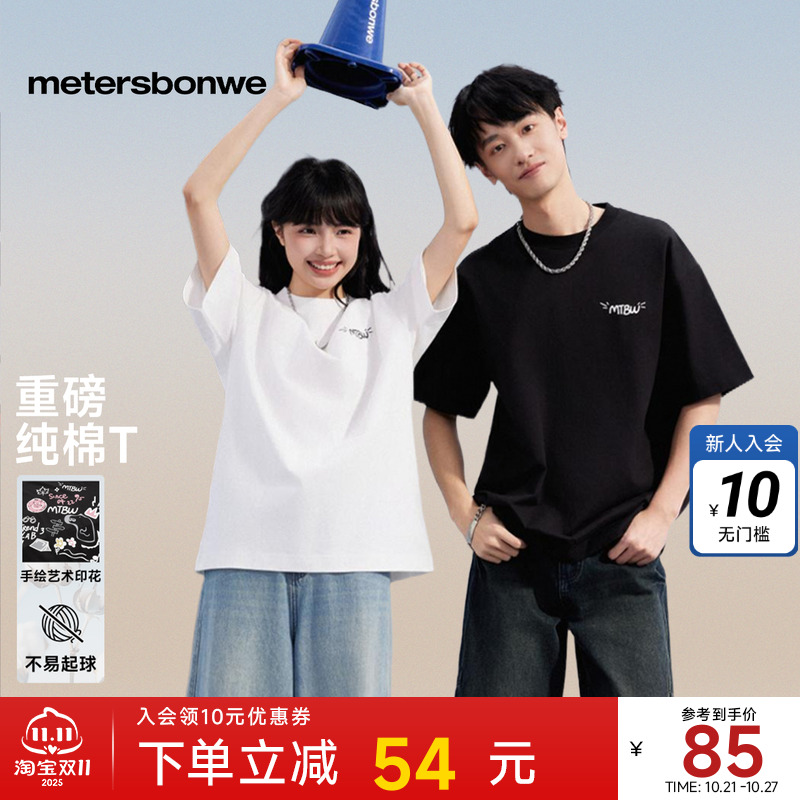 美特斯邦威T恤短袖男2025夏季新款情侣潮流休闲后背印花T恤上衣