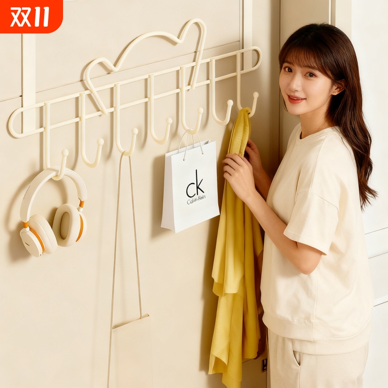 门后挂钩连排钩免打孔挂架置物衣服收纳架入户门上挂衣架壁挂衣钩