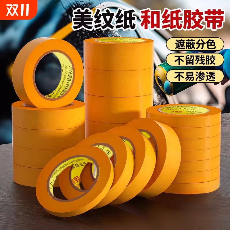 黄色和纸胶带油漆用贴纸美缝美文美纹纸胶带宽大号墙面分色纸装修