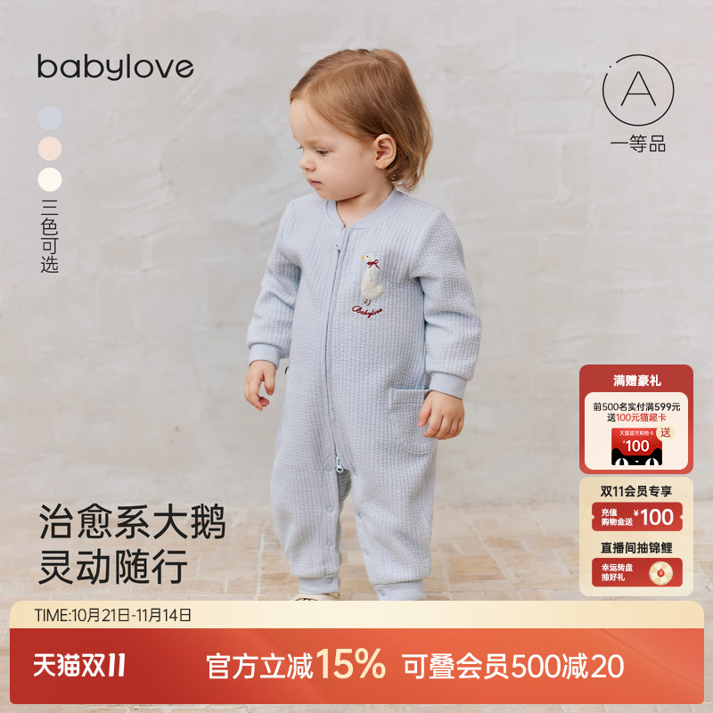 babylove婴儿连体衣秋冬季哈衣爬服宝宝简约薄夹棉保暖衣服外