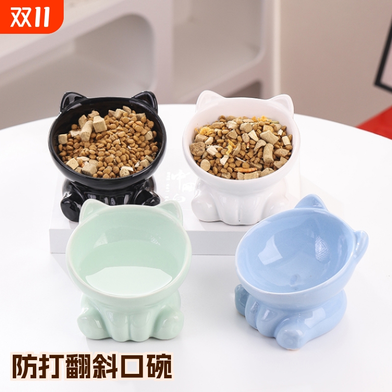 猫碗陶瓷猫食盆高脚防打翻斜口