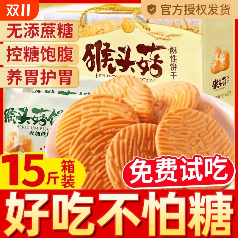 猴头菇饼干猴菇无糖精饼干旗舰店养小糖人低脂减胃肥零食官方专用