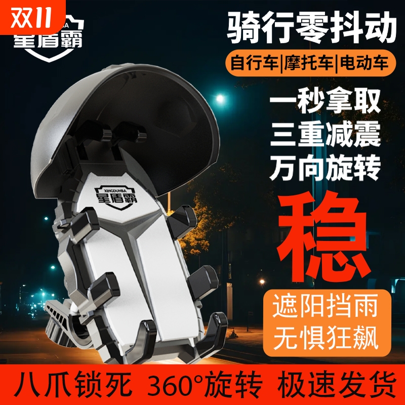 八爪鱼手机支架电动瓶车小头盔遮阳避雨防抖震牢固快递外卖员专用