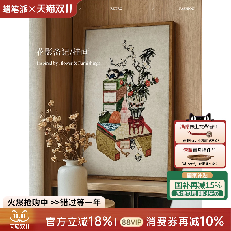 蜡笔派花束腰青花瓶中式手绘瓷器