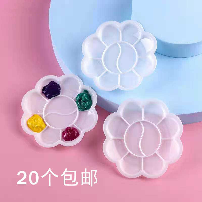 调色盘画盘幼儿园水粉水彩画画颜料diy盘子摆摊用手工调色梅花盘