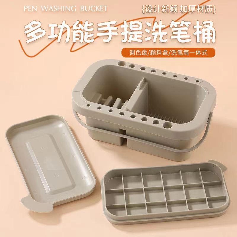 多功能三合一洗笔筒美术水彩油画笔调色盒丙烯颜料清洗易携带套装
