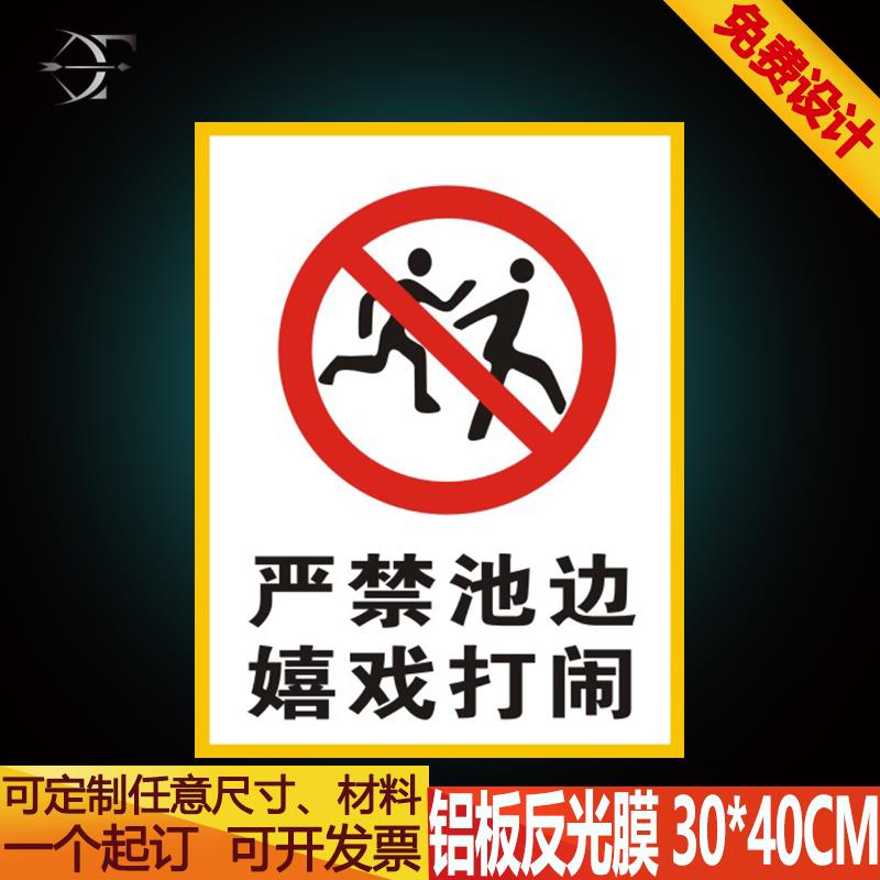 严禁池边嬉戏打闹警示牌游泳池安全标识牌提示牌户外防水标识牌