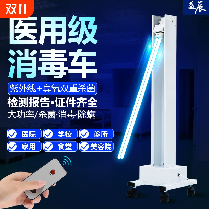 益辰紫外线消毒灯杀菌灯消毒车灯幼儿园医院移动式臭氧除螨灭菌灯