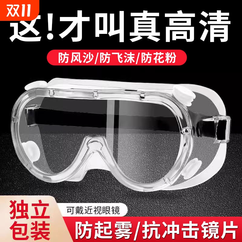 骑行护目镜劳保防飞溅打磨防风沙男士女防灰沫防冲击防护眼镜高清