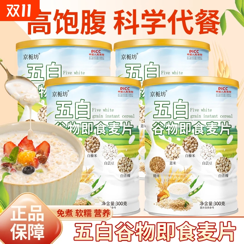 五白谷物即食麦片早餐薏米白青稞白芸豆杂粮膳燕麦代餐