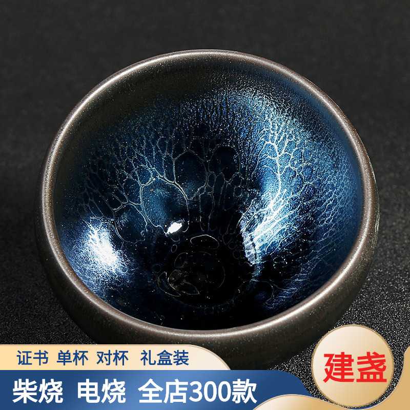 凤蓝龙鳞纹建盏钵型杯油滴麒麟曜变天目釉主人杯原矿铁胎彩釉