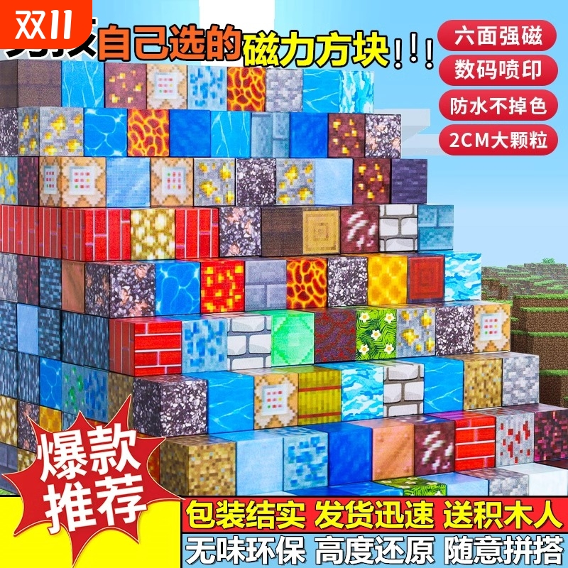 我的磁力世界建筑造型积木百变拼装磁吸mc方块儿童玩具方块大号