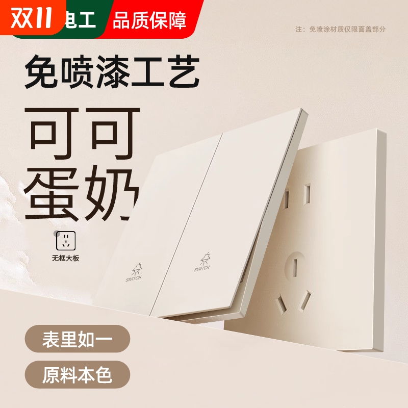 国际电工奶油风蛋奶白超薄开关插座面板86型家用一开五孔10A电源