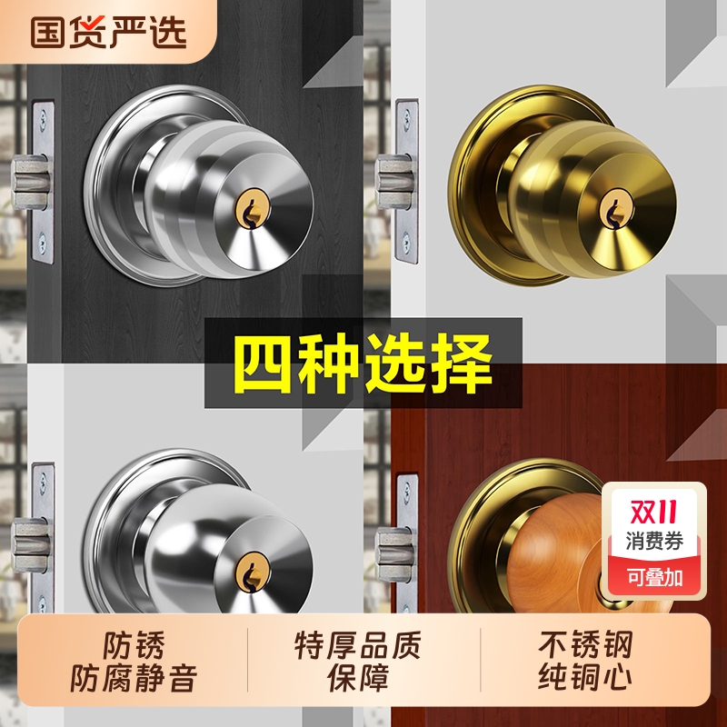 卫生间厕所门锁无钥匙浴室家用洗手间室内铝合金门把手单舌通用型