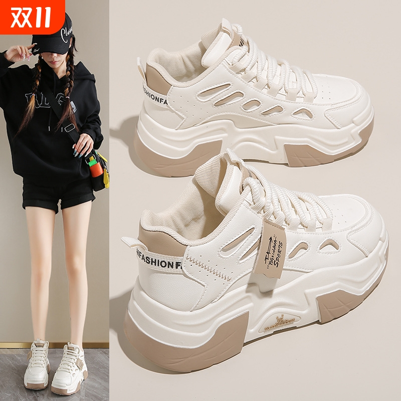 厚底百搭小白鞋女2024新款秋季皮面增高运动休闲板鞋老爹专业圆头