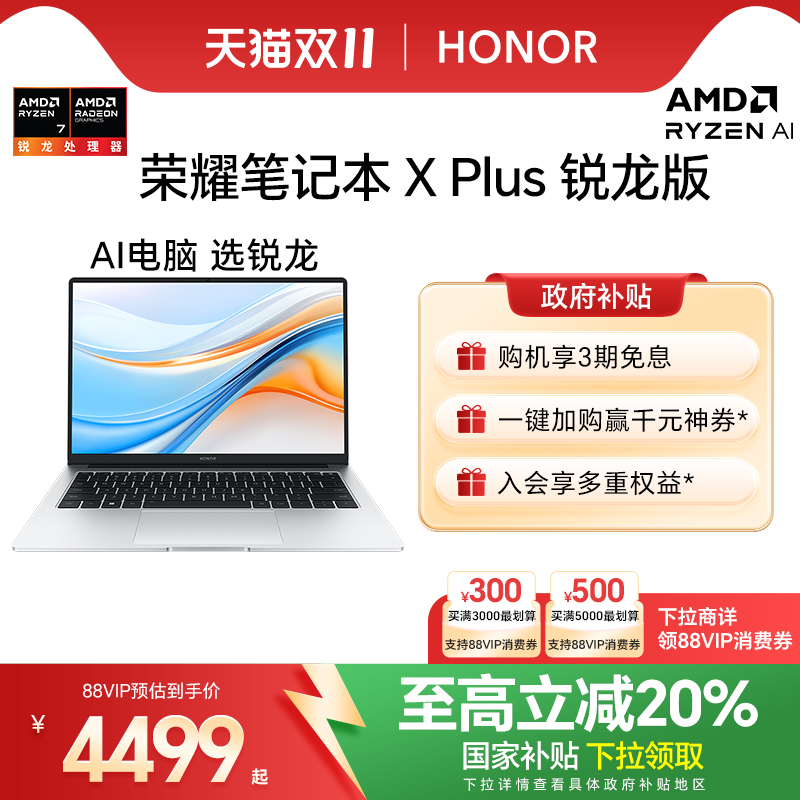 【政府补贴20%】HONOR/荣耀笔记本 X Plus锐龙版 R