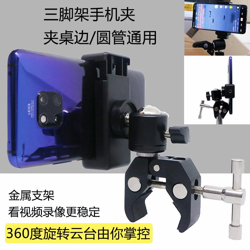 多功能金属固定夹支架桌面手机直播三脚架1/4接口通用夹子头配件