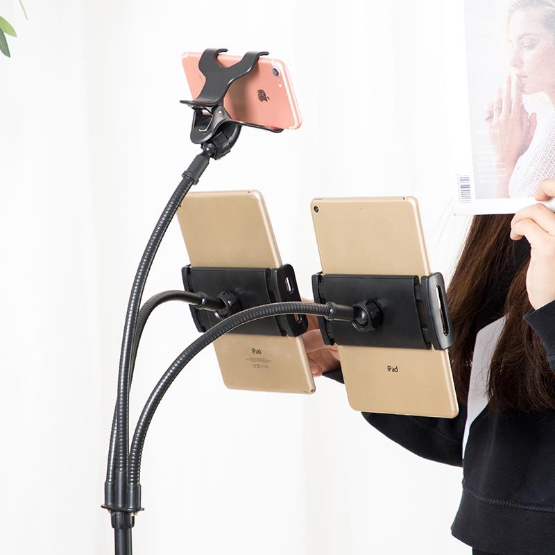手机直播支架多机位夹子头双平板电脑通用落地三脚架折叠便携唱歌