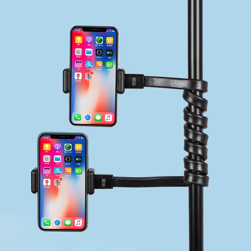 多功能手机直播支架双头1/4螺丝接口缠绕软管双机位扩展支撑架子