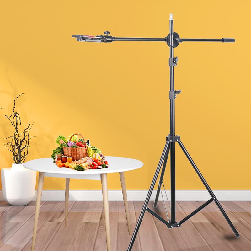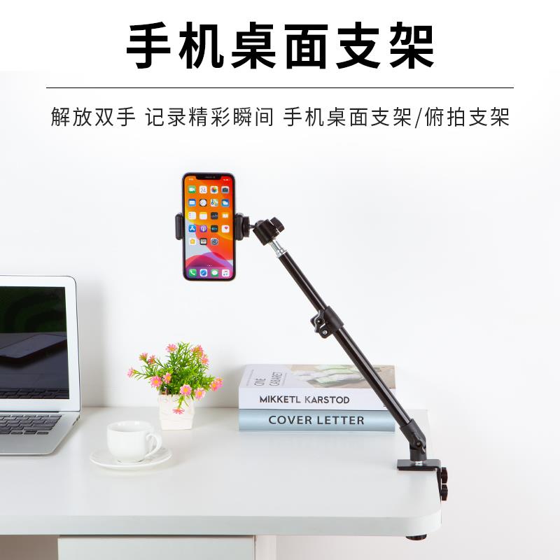 手机桌面俯拍支架网红直播落地扩展伸缩横杆多功能三脚架合金夹头