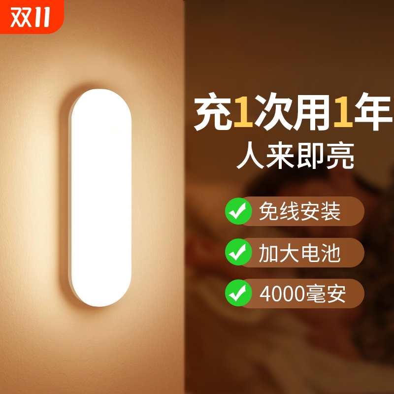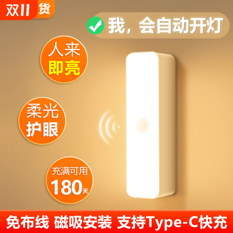 小夜灯智能自动感应灯入户门人来即亮人走即灭夜间磁吸充电过道