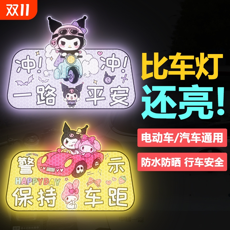 电动车夜间反光贴库洛米卡通反光贴车身装饰汽车个性车贴创意遮痕
