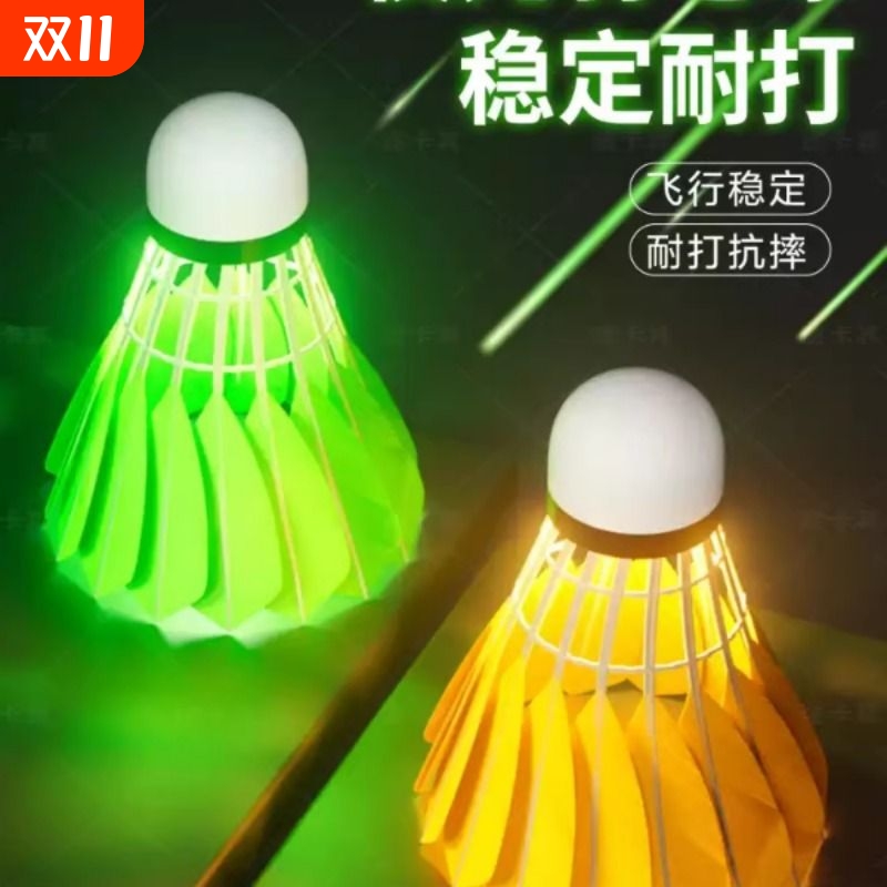 夜光羽毛球高端发光防风耐打户外室外夜用夜间荧光耐用带灯鹅毛球