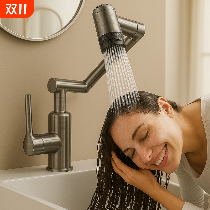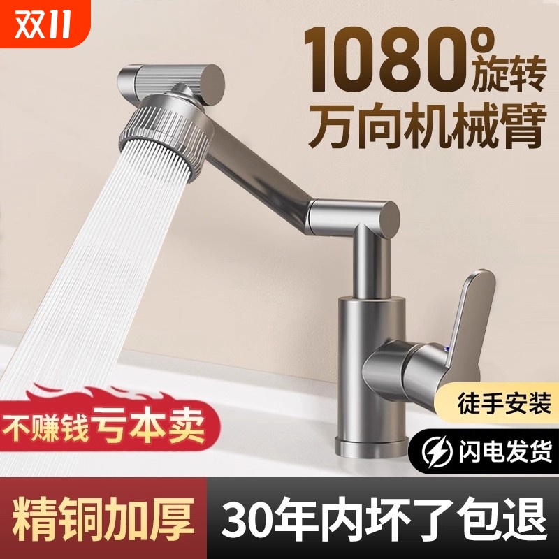 水龙头洗脸盆卫生间多功能机械臂万向旋转冷热数显面盆洗手浴室柜
