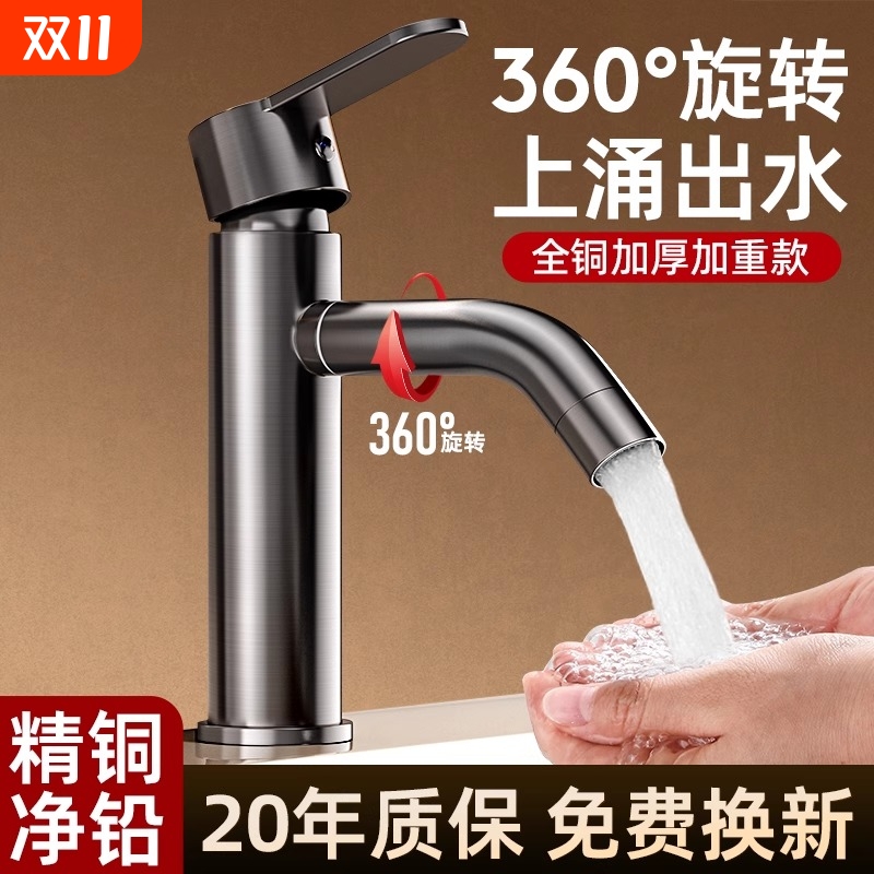 洗脸盆水龙头冷热水家用卫生间洗手池洗漱台面盆浴室柜单冷铜龙头