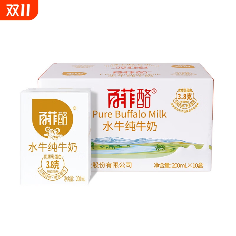 百菲酪饮用纯牛奶200ml*10盒水牛奶儿童牛奶水牛原生营养蛋白