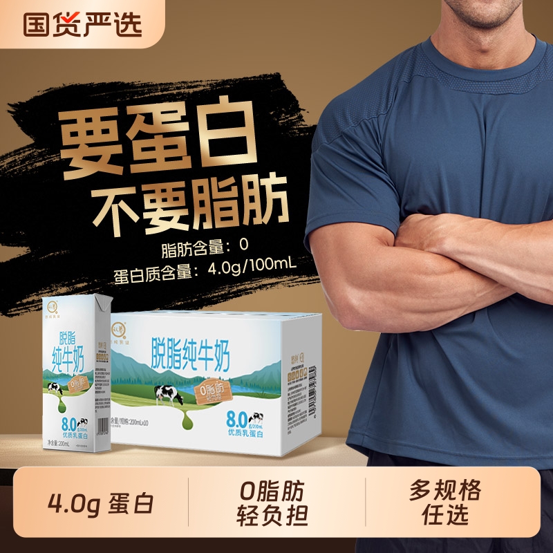 认养脱脂牛奶0脂肪纯牛奶10盒
