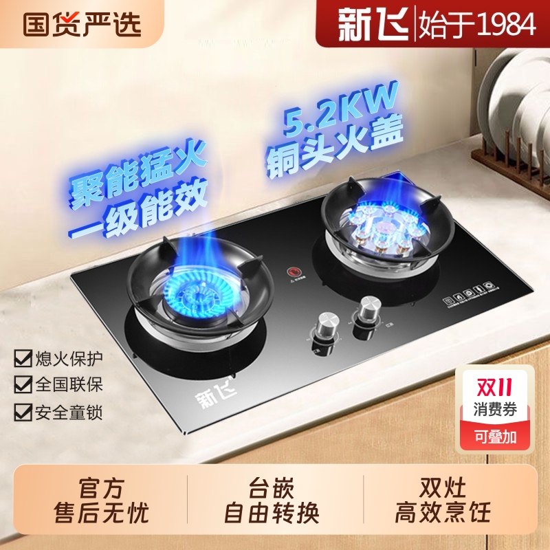 海尔天然气燃气灶煤气灶家用双灶定时灶台灶具以旧换新补贴Q2BE7