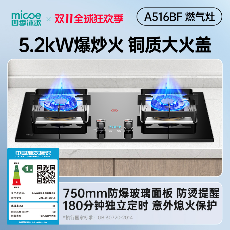 华帝百得大火力燃气灶定时猛火双灶大火力天然气嵌入式灶具73/75