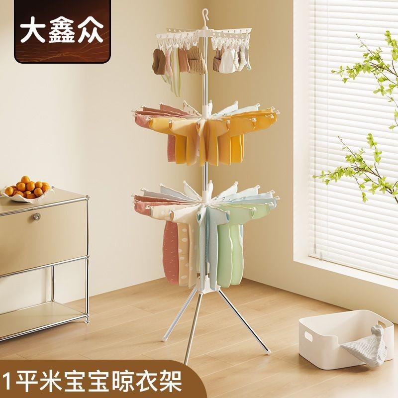 婴幼儿晾衣架落地折叠可旋转家用儿童宝宝多功能衣架阳台晒晾神器