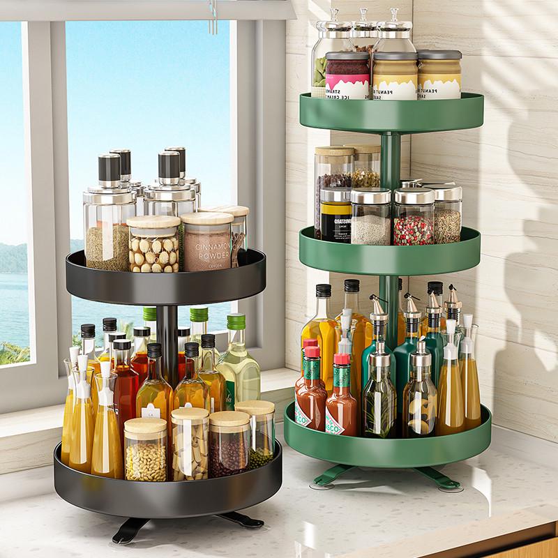 厨房旋转调料置物架多功能专用台面调味品瓶罐油盐酱醋收纳盒架柜