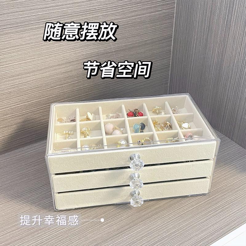 大容量耳环收纳盒抽屉式多层精致钻盒耳钉饰品盒透明防氧化首饰盒