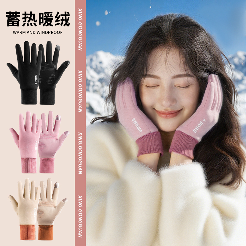 手套女冬季防寒防风保暖滑雪手套骑行摩托车加绒可触屏棉手套男