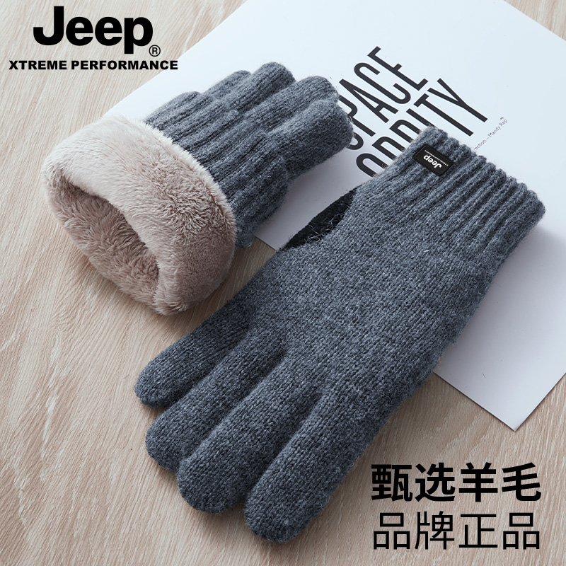 jeep吉普男士冬季羊毛混纺针织手套加绒加厚保暖防寒可触屏手套男