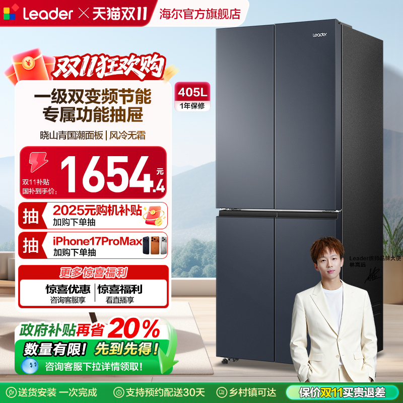 海尔出品502L超薄十字对开四门一级能效双变频无霜家用统帅电冰箱