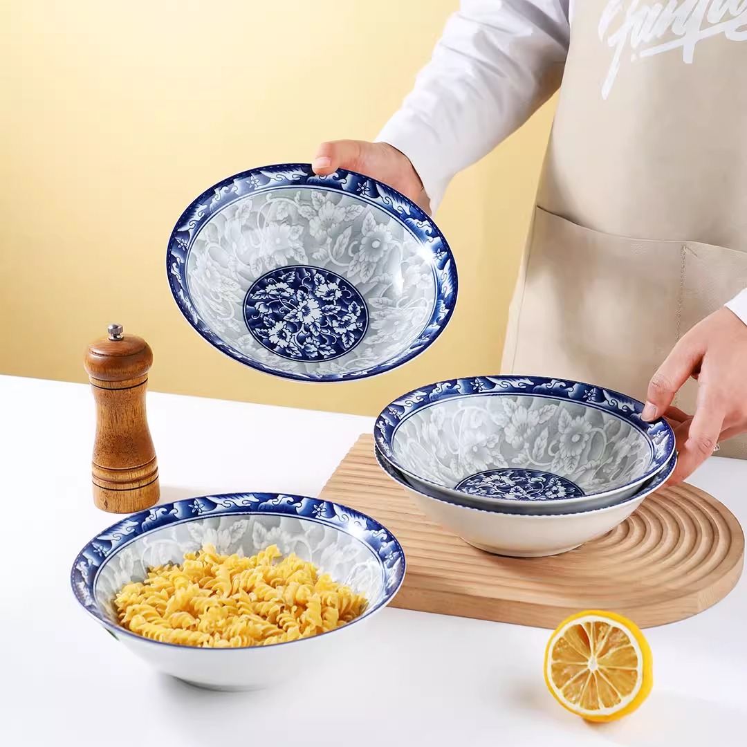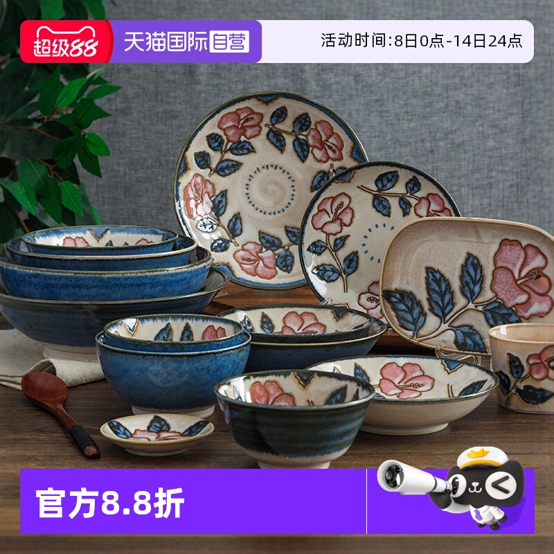 日本冲绳玫瑰餐具进口钵碗蓝赤花