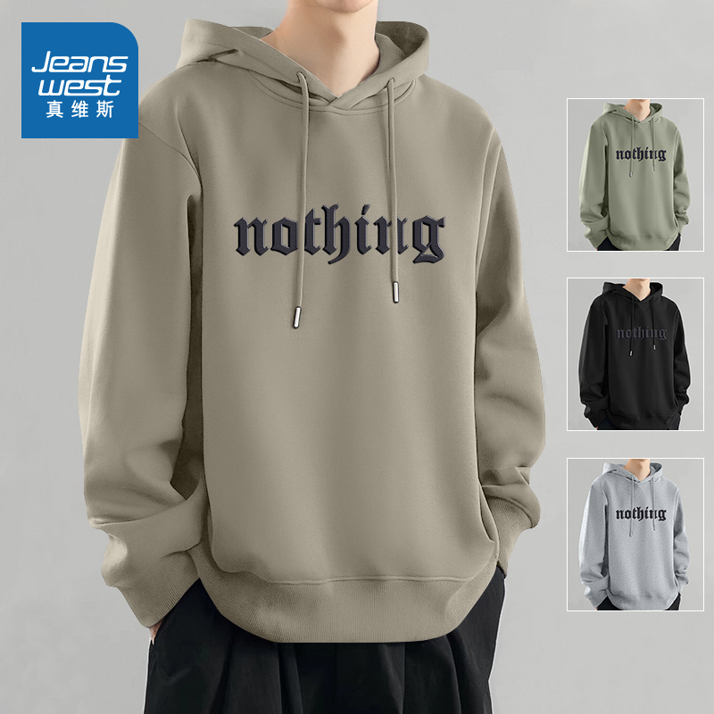 稻草人秋季新款宽松潮流印花卫衣男款连帽上衣青少年打底衫男女款